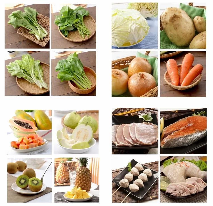 包含多樣的蔬菜、根莖與水果,提供全家蔬菜類、水果類的充分營養