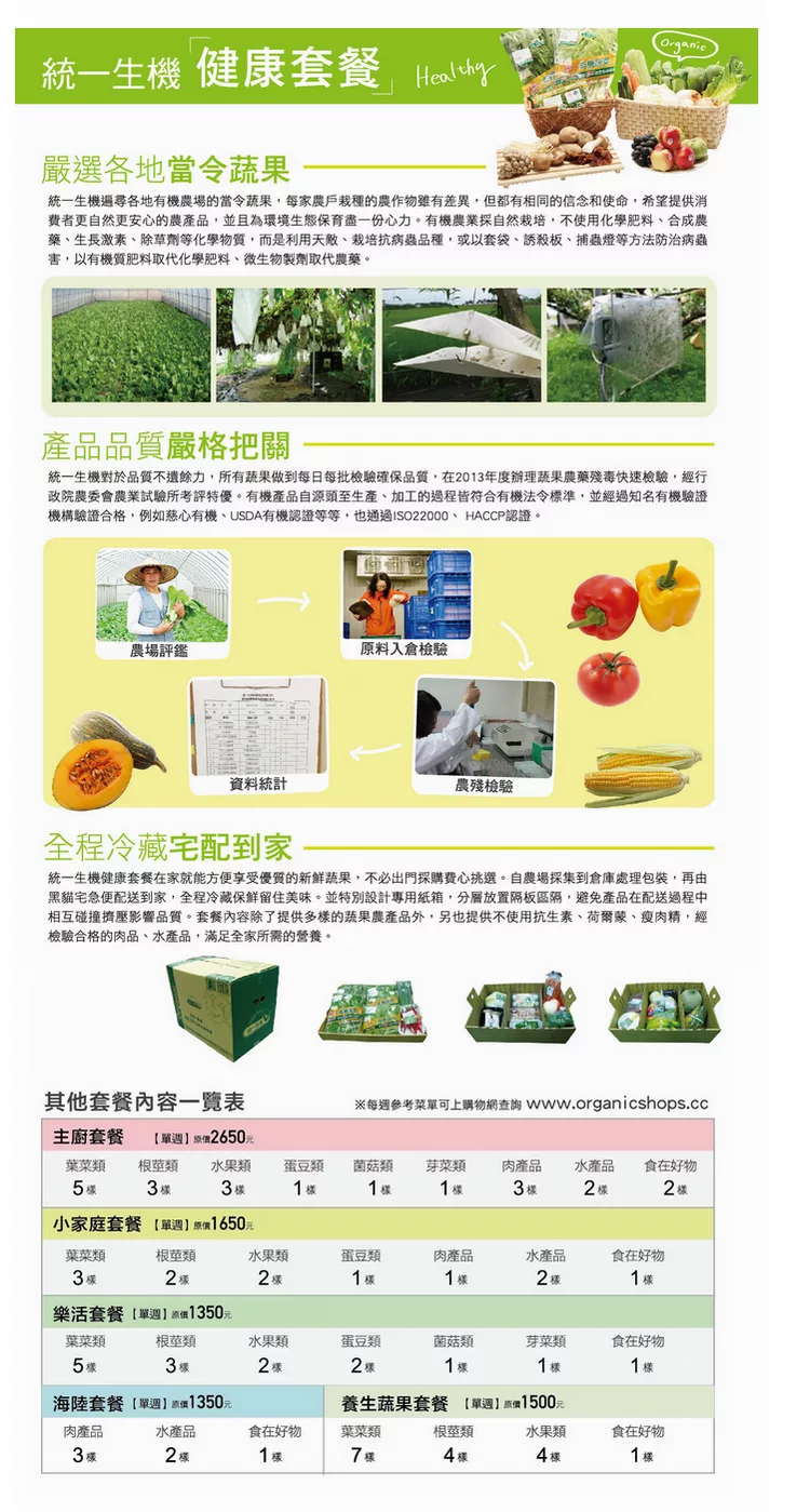 →→→→更多詳細”【統一生機】養生蔬果套餐-單週”介紹請點我