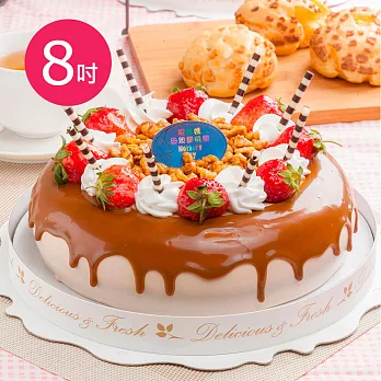 【樂活e棧】生日快樂造型蛋糕-香豔焦糖瑪奇朵蛋糕(8吋-顆,共2顆)水果x布丁