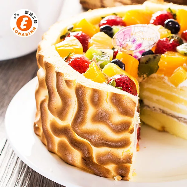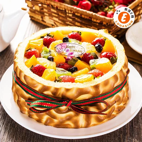 【樂活e棧】生日快樂造型蛋糕-虎皮百匯蛋糕(6吋-顆,共1顆)水果x布丁
