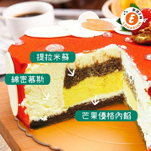 巧克力蛋糕體配上提拉米蘇+芒果優格內餡