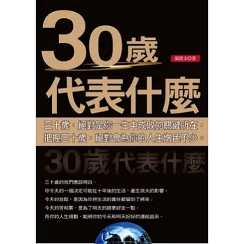 三十歲,絕對是你一生中成敗的關鍵所在,把握三十歲,絕對會為你的人生增色不少。