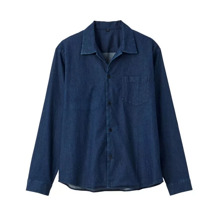 商品說明: [MUJI無印良品]男印度棉丹寧方型剪裁襯衫S~M靛藍