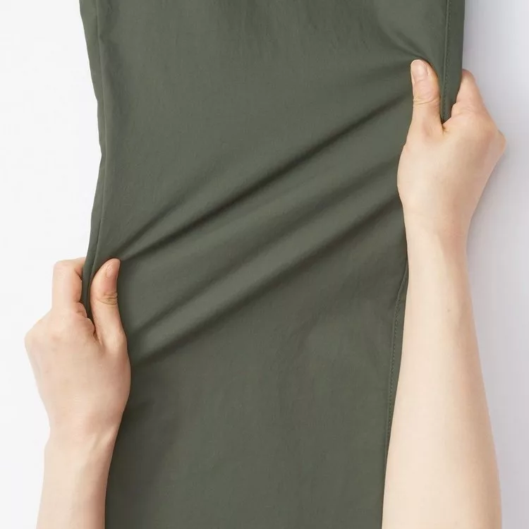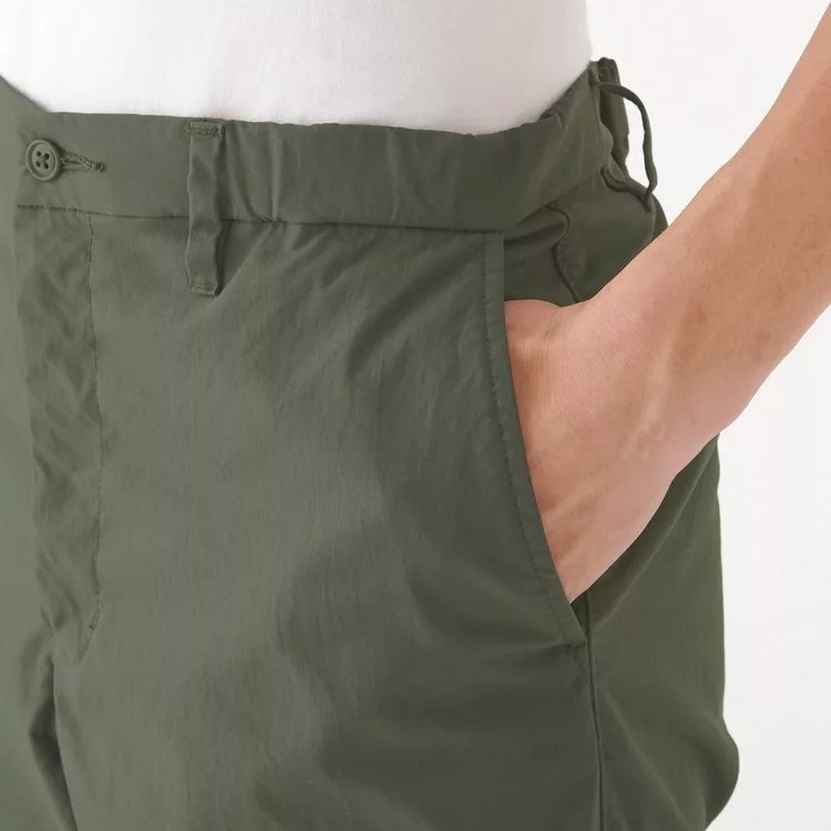 商品說明:使用具有伸縮性的素材,並施以撥水加工處理,寬鬆的剪裁設計為其特長。腰部採用鬆緊帶的彈性設計。