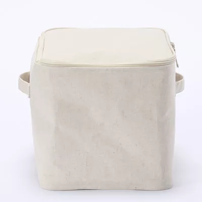 商品描述: [MUJI無印良品]棉麻聚酯收納箱長方形中附蓋