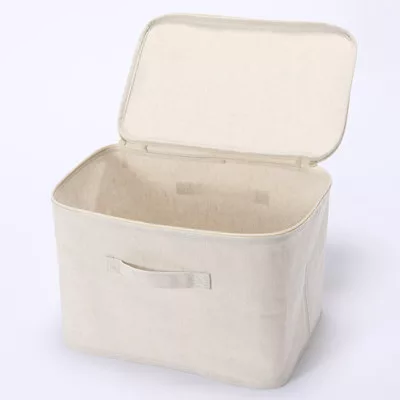 品名:棉麻聚酯收納箱長方形中附蓋