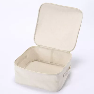 商品描述: [MUJI無印良品]棉麻聚酯收納箱附蓋正方形.小