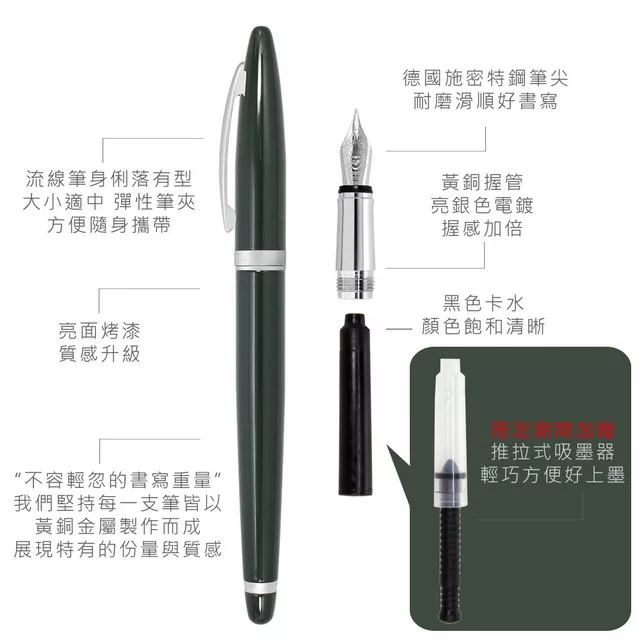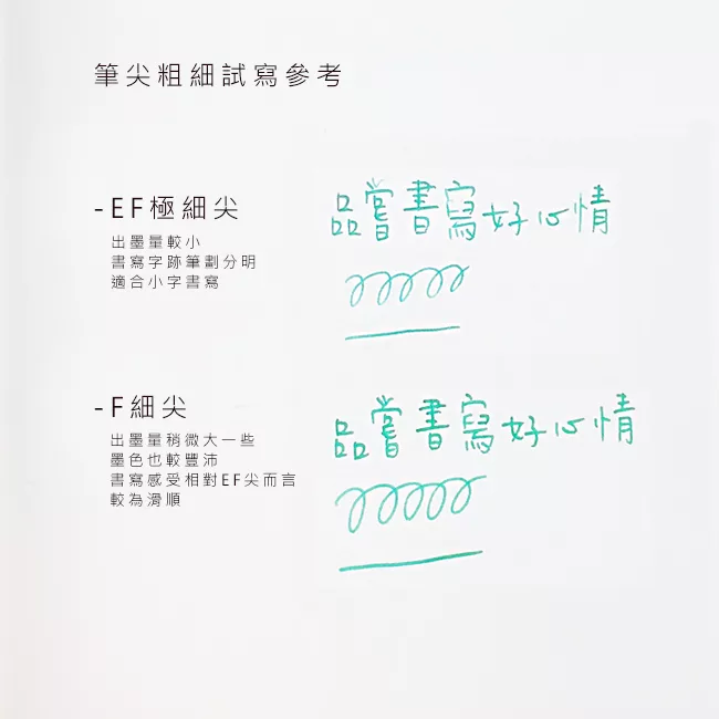【保養說明】鋼筆如久未使用有可能導致墨水乾涸,建議定期以水清潔鋼筆尖以延長筆尖使用壽命;另外不同材質紙質亦可能影響鋼筆書寫效果。