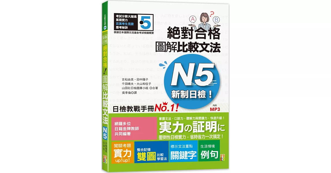 博客來-新制日檢!絕對合格 圖解比較文法N5(25K+MP3)訂購網址: https://www.books.com.tw/exep/assp.php/87926/products/0010856228?utm_source=87926&utm_medium=ap-books&utm_content=recommend&utm_campaign=ap-202001