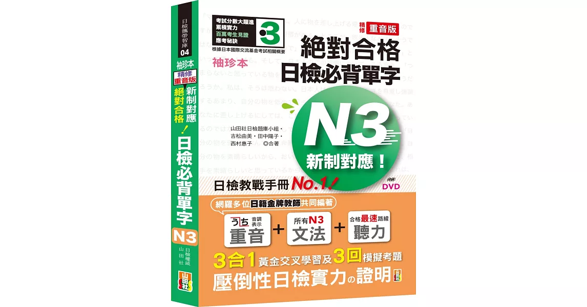 博客來-袖珍本 精修重音版 新制對應 絕對合格!日檢必背單字N3(50K+DVD)訂購網址: https://www.books.com.tw/exep/assp.php/87926/products/0010853489?utm_source=87926&utm_medium=ap-books&utm_content=recommend&utm_campaign=ap-202001
