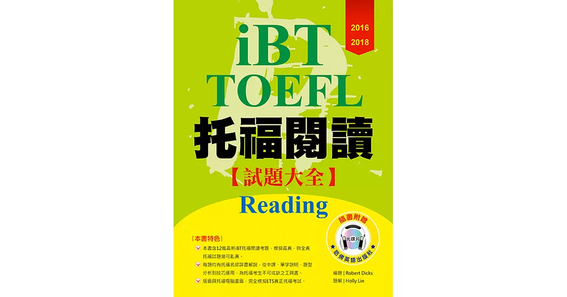 博客來-2016-2018 iBT托福閱讀試題大全(附1光碟)訂購網址: https://www.books.com.tw/exep/assp.php/87926/products/0010721307?utm_source=87926&utm_medium=ap-books&utm_content=recommend&utm_campaign=ap-201906