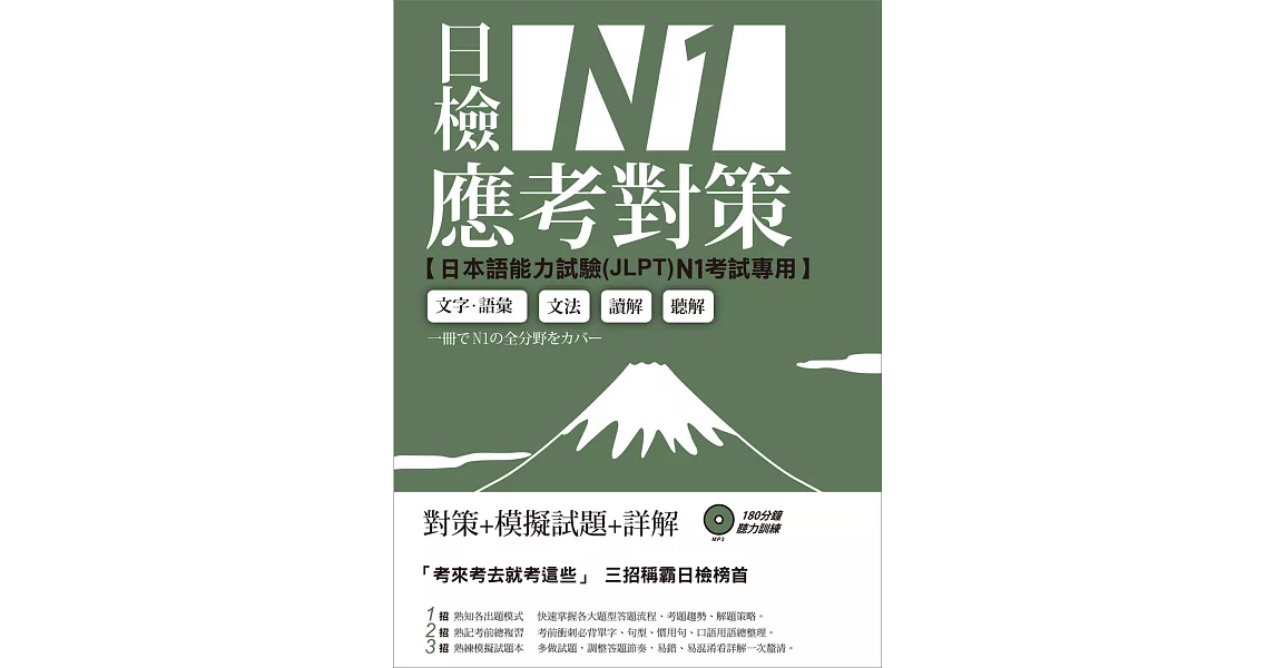 博客來-日檢N1應考對策(附2回模擬試題+1MP3)訂購網址: https://www.books.com.tw/exep/assp.php/87926/products/0010709896?utm_source=87926&utm_medium=ap-books&utm_content=recommend&utm_campaign=ap-201906