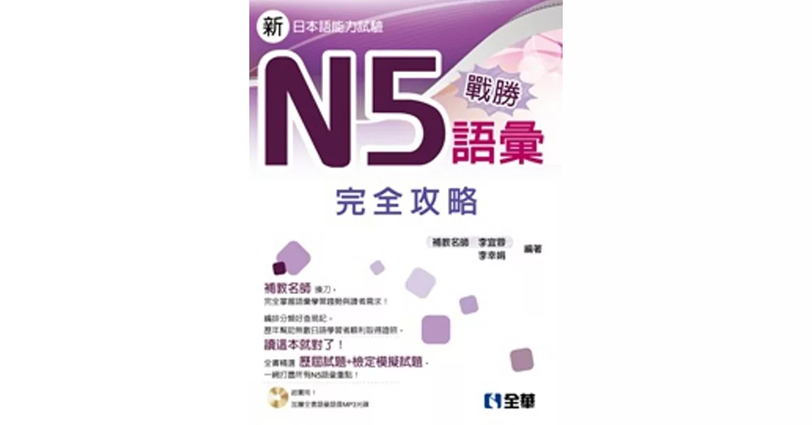 博客來-戰勝N5語彙完全攻略(附語音光碟)訂購網址: https://www.books.com.tw/exep/assp.php/87926/products/0010709042?utm_source=87926&utm_medium=ap-books&utm_content=recommend&utm_campaign=ap-201906