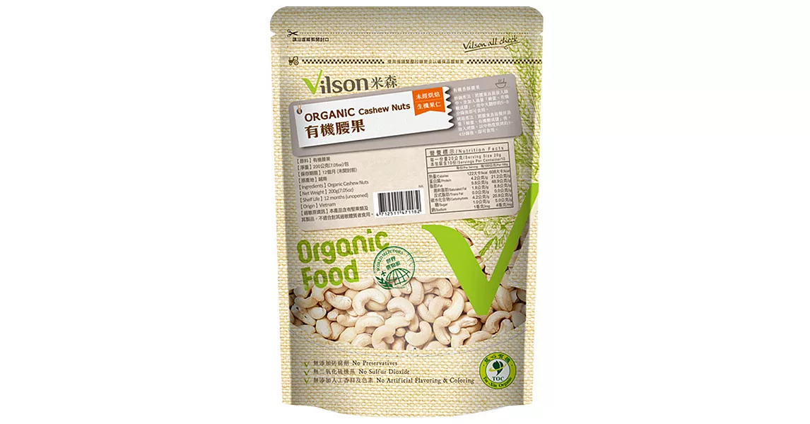 1. 品名:【米森Vilson】有機腰果