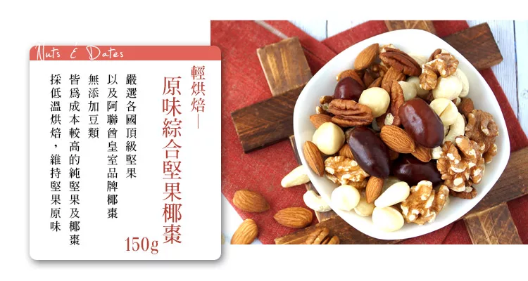 博客來-【日華好物】綜合堅果椰棗150g訂購網址: https://www.books.com.tw/exep/assp.php/87926/products/N001037802?utm_source=87926&utm_medium=ap-books&utm_content=recommend&utm_campaign=ap-201911